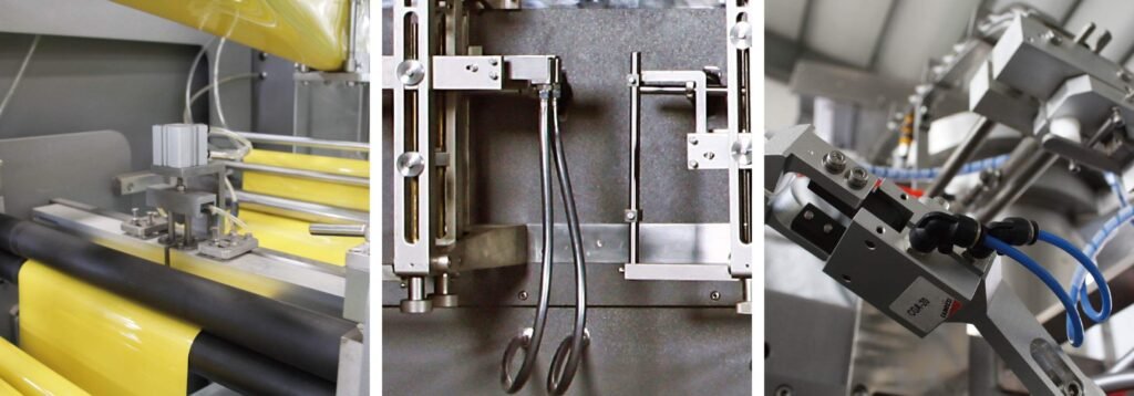 • Film Unwind: The machine starts by unwinding a roll of flexible packaging material (usually a multilayer laminate) from a reel.